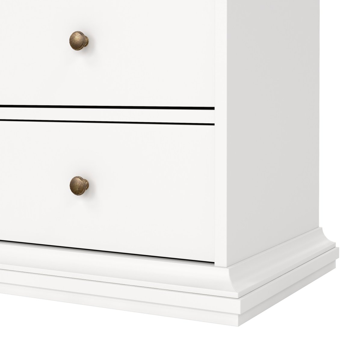 Hinter den beiden Glastüren verbergen sich drei Glasböden, ideal zum stilvollen Präsentieren von Porzellan, Gläsern oder Lieblingsstücken. Zwei Schubladen im unteren Bereich schaffen zusätzlichen Platz für Tischwäsche und Kleinigkeiten. So verbindet der Paris-Schrank praktische Aufbewahrung mit einer warmen, einladenden Stimmung im Raum.