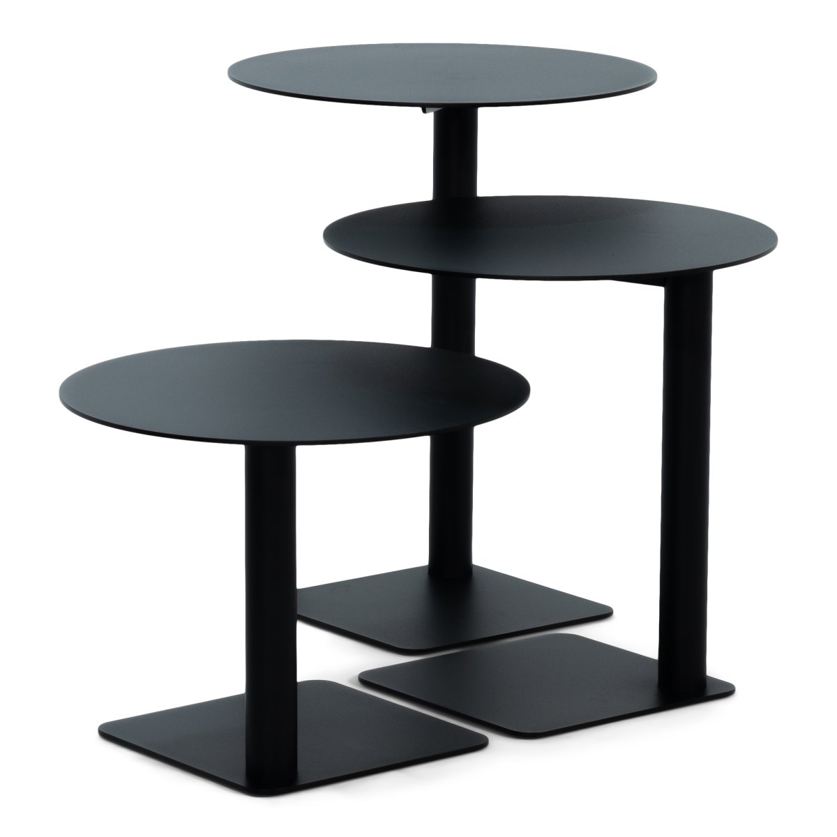 Die Sunny-Serie besteht aus drei Beistelltischen aus Stahl in der Farbe Greystone.