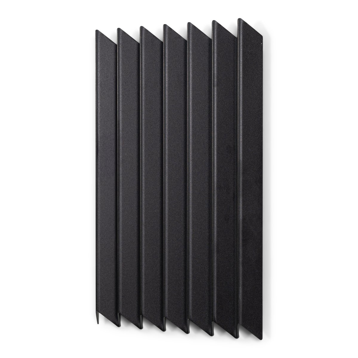 Die gefaltete Stahlplatte bildet an der Oberseite dezente Haken und bietet so eine praktische Lösung zum Aufhängen von Mänteln oder Taschen.