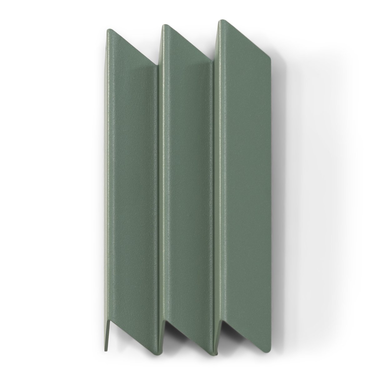 Die gefaltete Stahlplatte bildet an der Oberseite dezente Haken und bietet so eine praktische Lösung zum Aufhängen von Mänteln oder Taschen.
