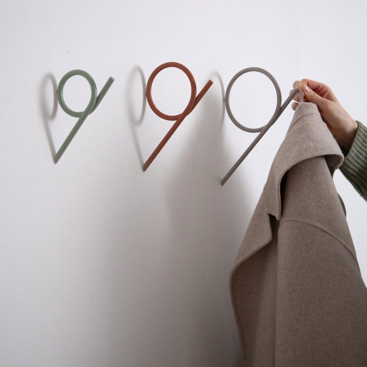 Verspielt und funktional – TUBA ist ein moderner Haken, der sich flexibel und kreativ an der Wand anordnen lässt.