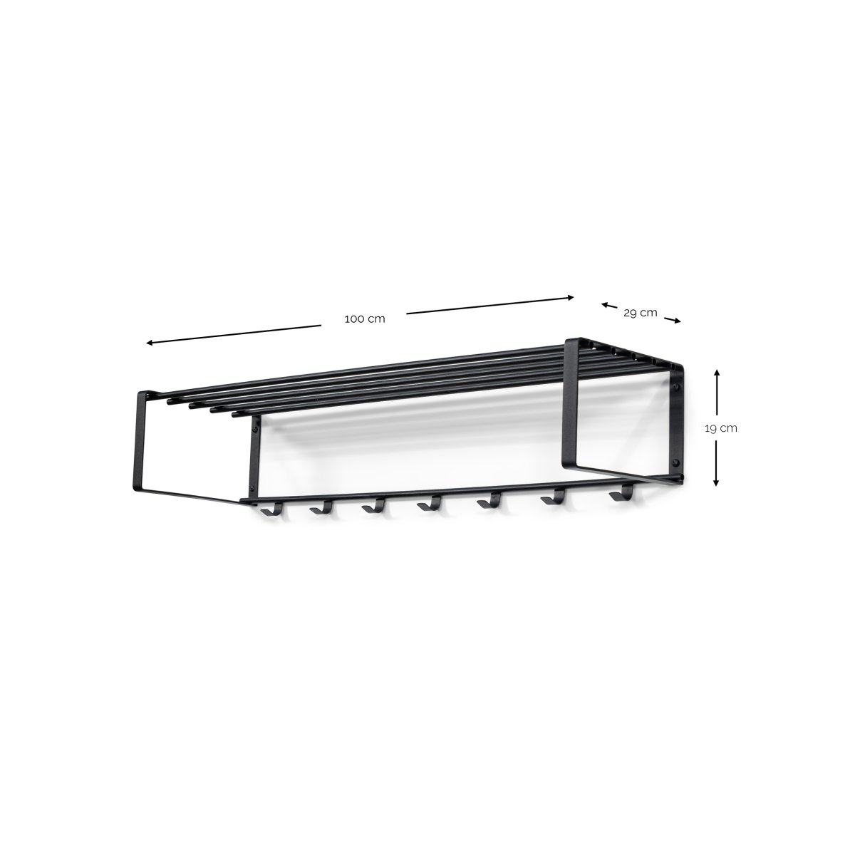 Dieser schlicht gestaltete Garderobenständer ist 100 cm breit und eignet sich daher ideal für größere Eingangsbereiche.
