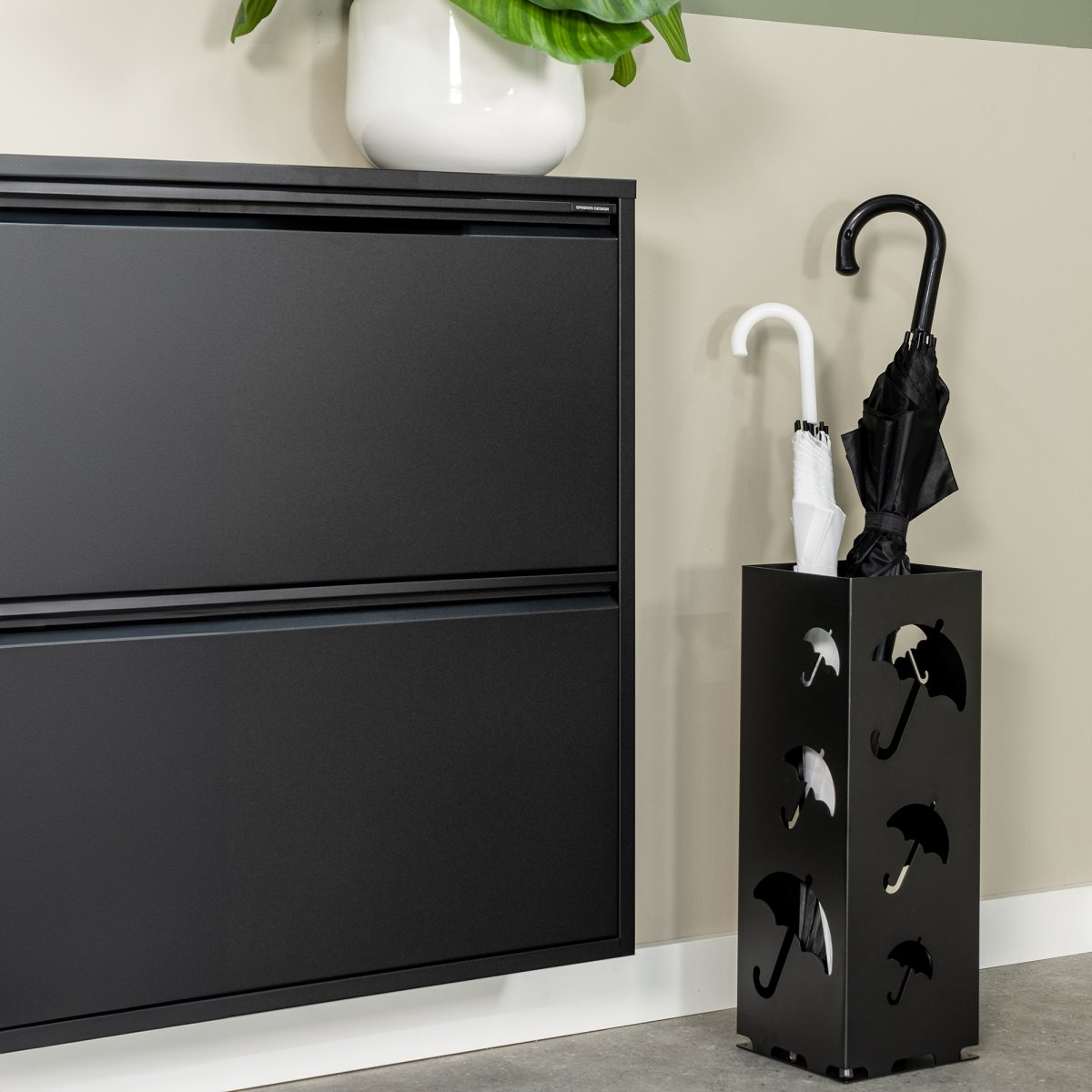 Der Schirmständer Storm besticht durch sein robustes und elegantes Design und sorgt für einen ordentlichen und stilvollen Eingangsbereich.